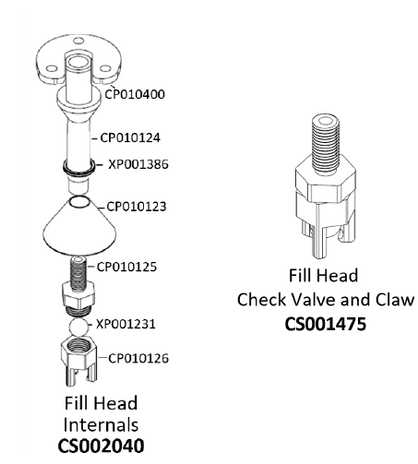 Varied fill levels across heads (+10 grams) - Float ball and claw assembly (CS001475) loose into the stem.